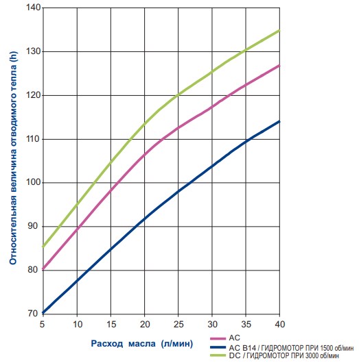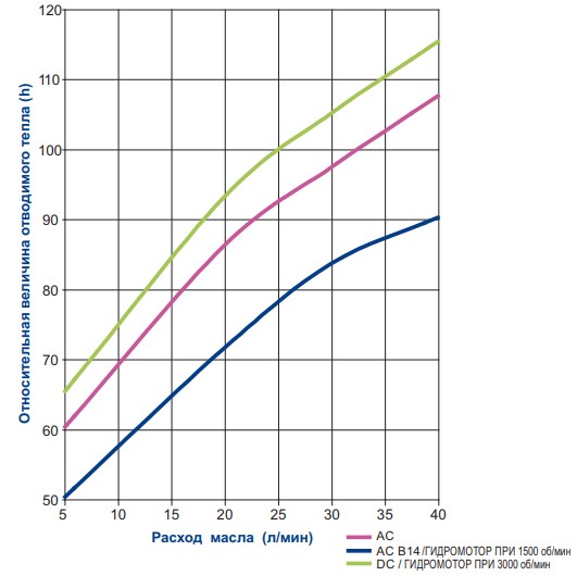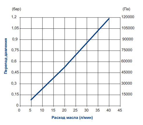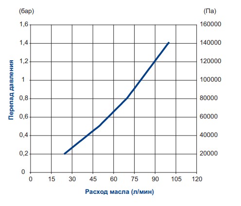 Рекомендуемый расход масла от 10 до 60 л/мин.