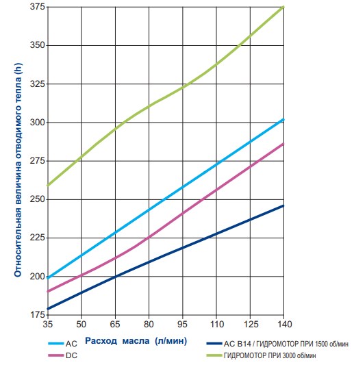 Рекомендуемый расход масла от 50 до 180 л/мин. (x2) = двойной электродвигатель