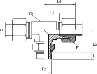 Адаптер ТС тройник P= 6 12x1.5 - 14x1.5 P= 8 (гориз.)