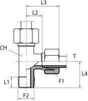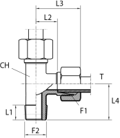 Адаптер ТС тройник P= 6 12x1.5 - M10x1(ш) контргайка+o.r. (гориз.)
