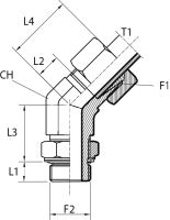 Адаптер ТС 45° P= 6 12x1.5 - M10x1 контргайка+o.r. (верт.)
