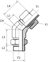 Адаптер ТС 90° P=22 30x2 - Metric 26x1.5(ш) Form B