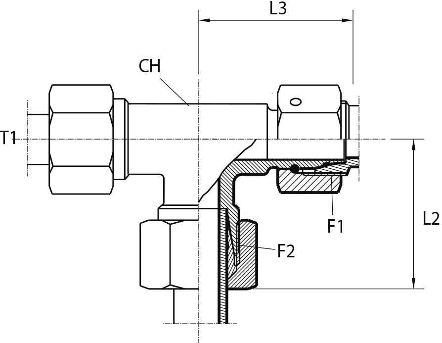 Адаптер ТС тройник P= 6 12x1.5 - DKOL(г) 12x1.5 (верт.)