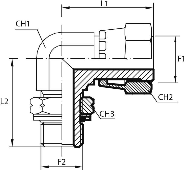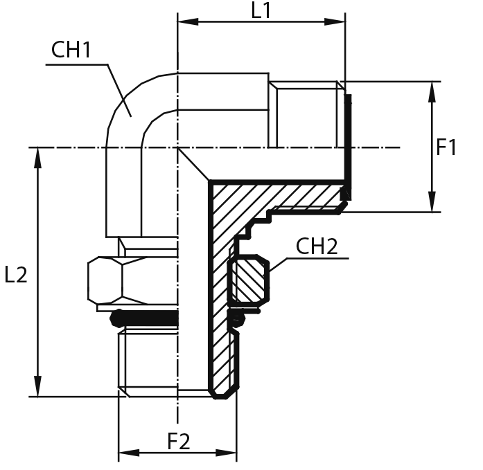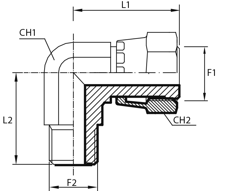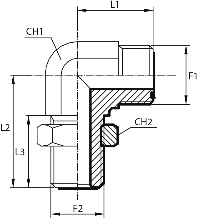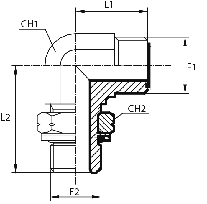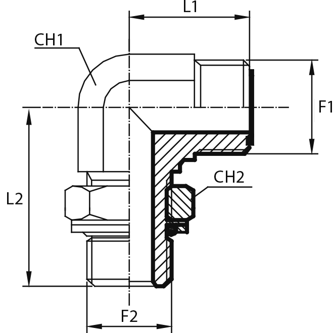 90° Переходник штуцер ORFS - штуцер ORFS