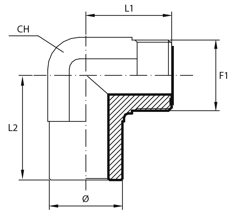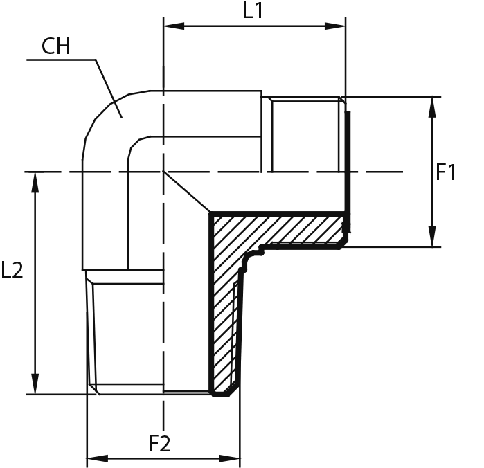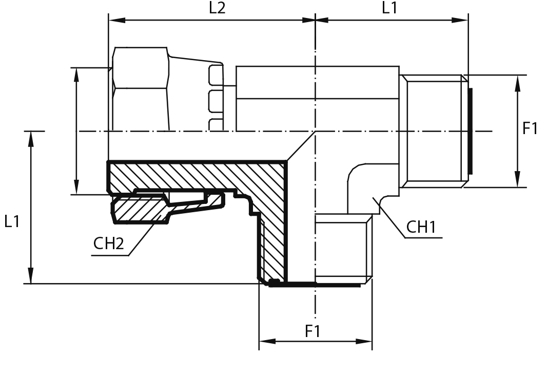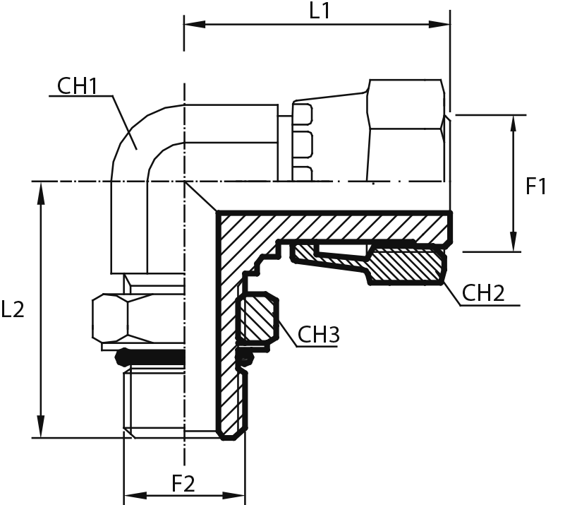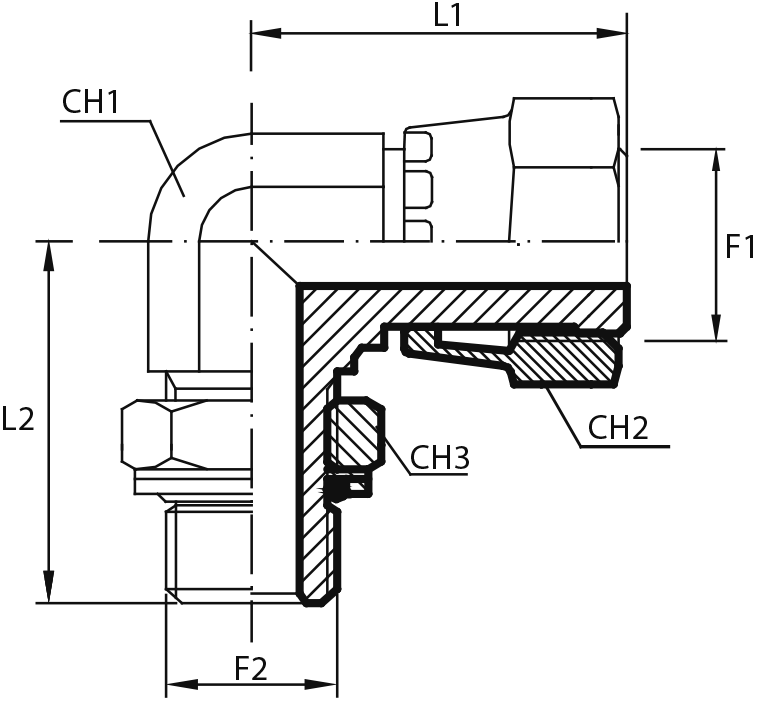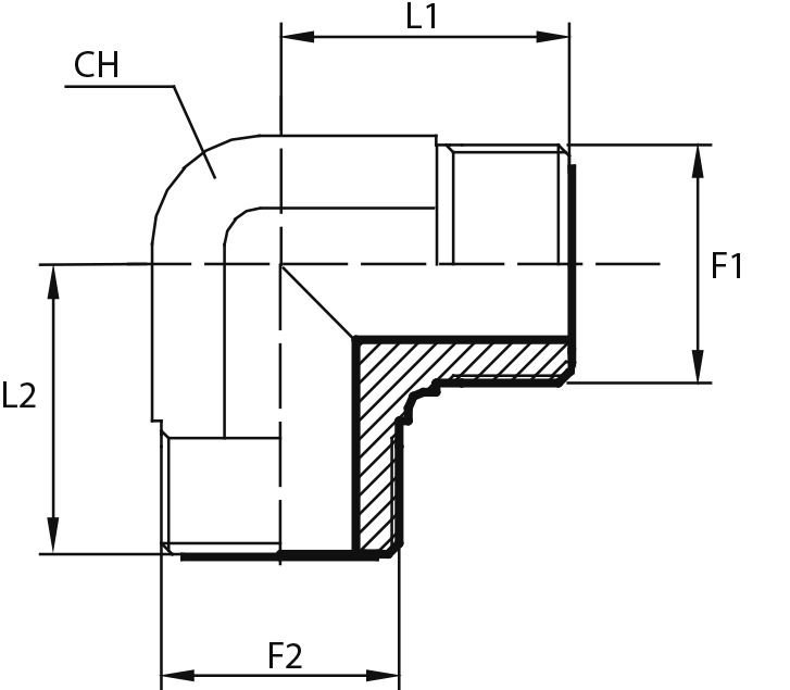 90° Переходник штуцер ORFS - штуцер ORFS