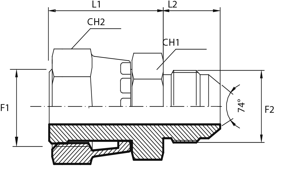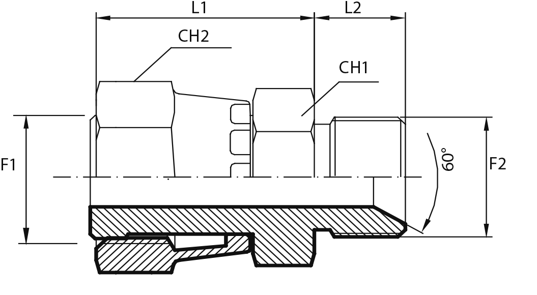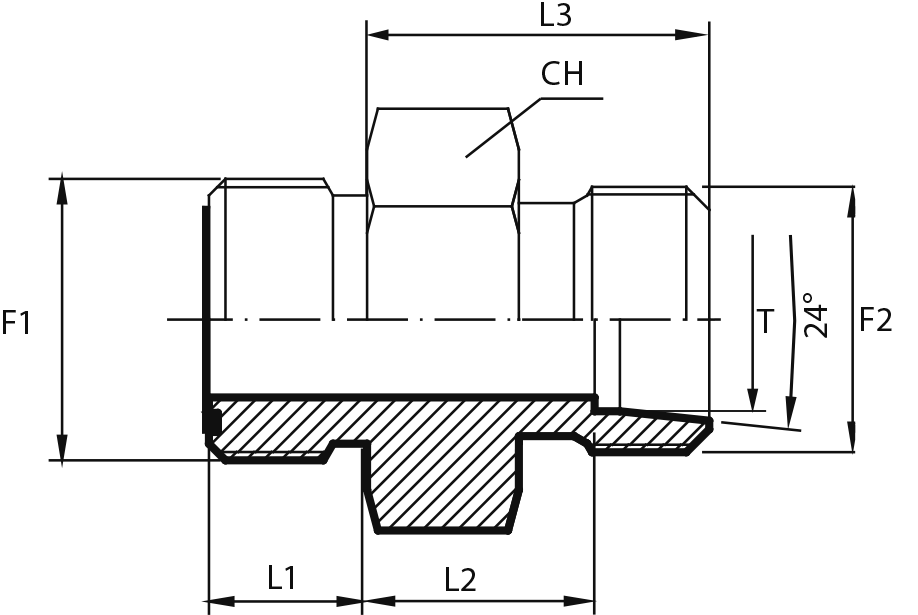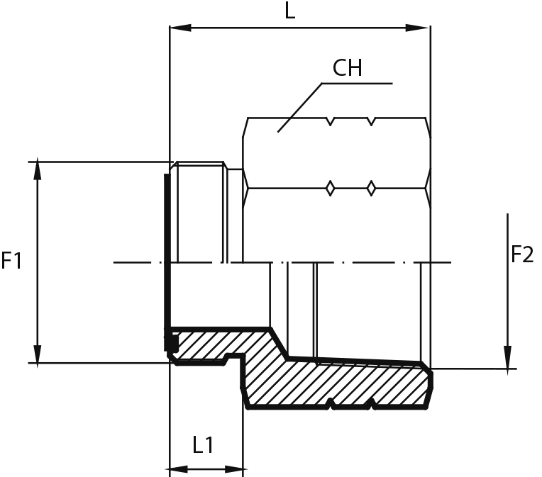 Переходник с наружной резьбой ORFS - штуцер JIC