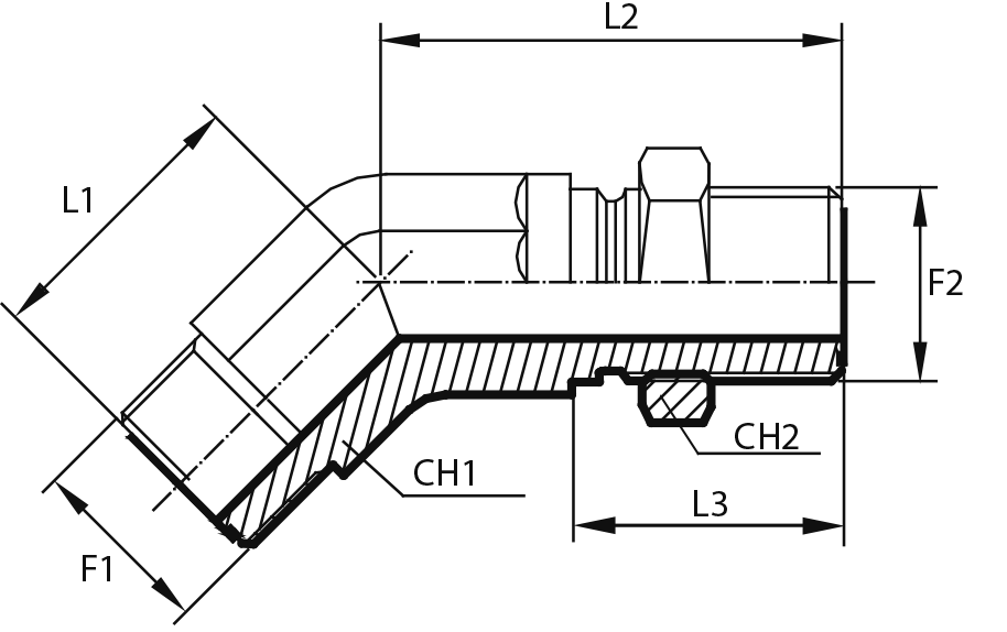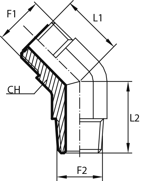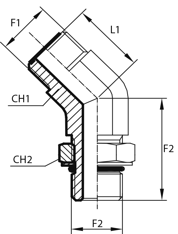 45°Переходник штуцер ORFS - штуцер ORFS
