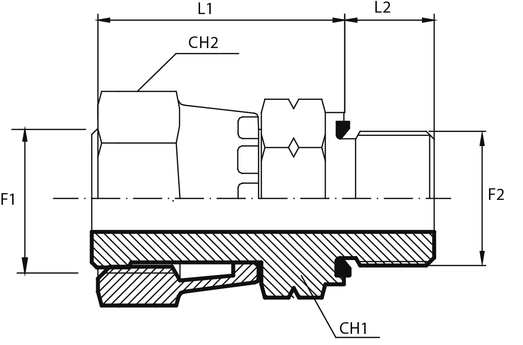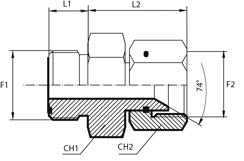 Адаптер штуцер ORFS - штуцер ORFS