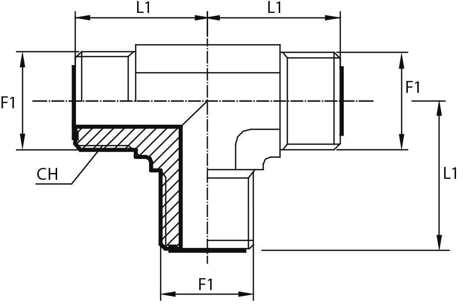 Адаптер тройник ORFS(ш) 9/16" - ORFS(г) 9/16" - ORFS(ш) 9/16"