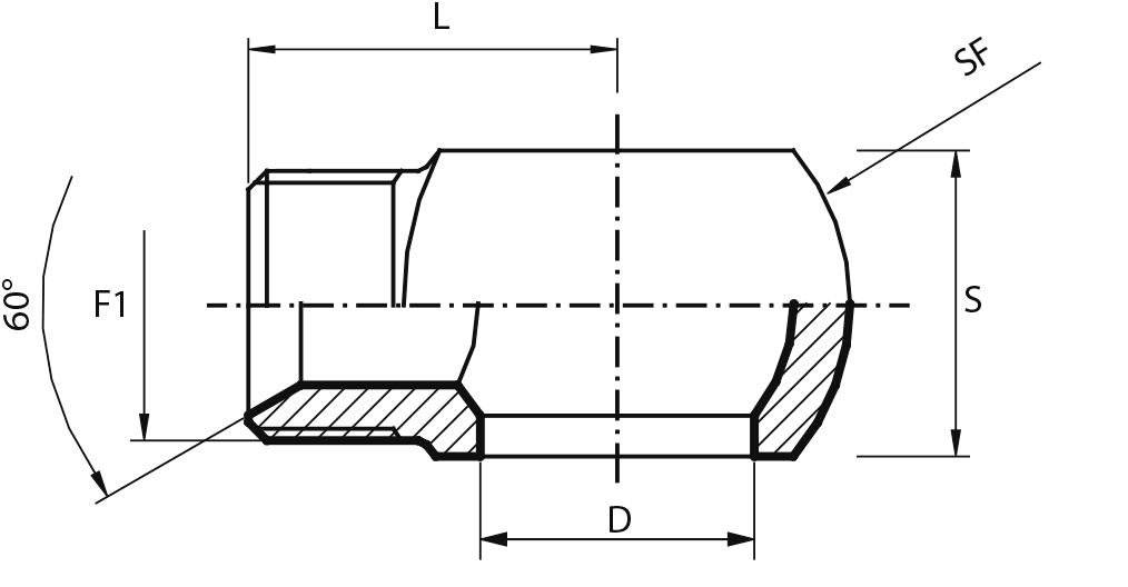 | Код | Резьба | D | L | S | SF |