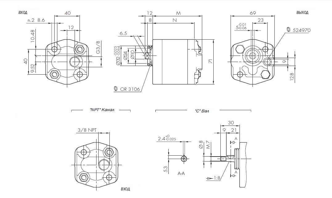 Монтаж насоса: двумя винтами М8 с моментом затяжки 23 + 2.4Нм.