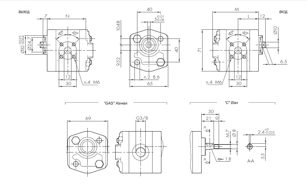 "GAS": G 3/8 глубина резьбы. Резьба нарезается с обоих сторон корпуса.