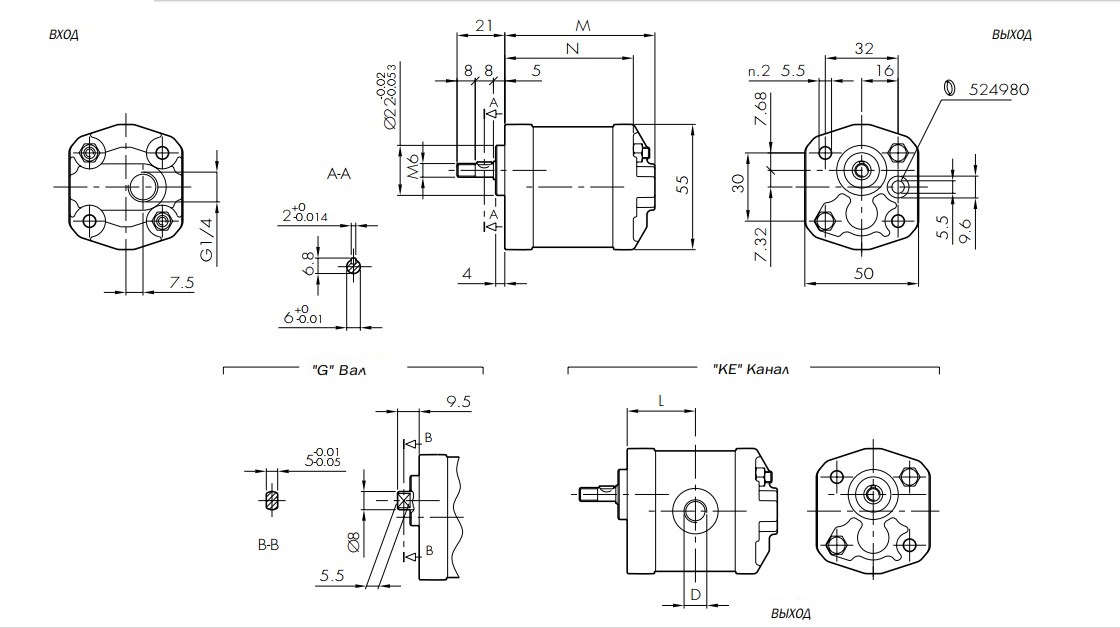 | см³/об | л/мин | бар | бар | бар | об/мин | мм | мм | мм | ||